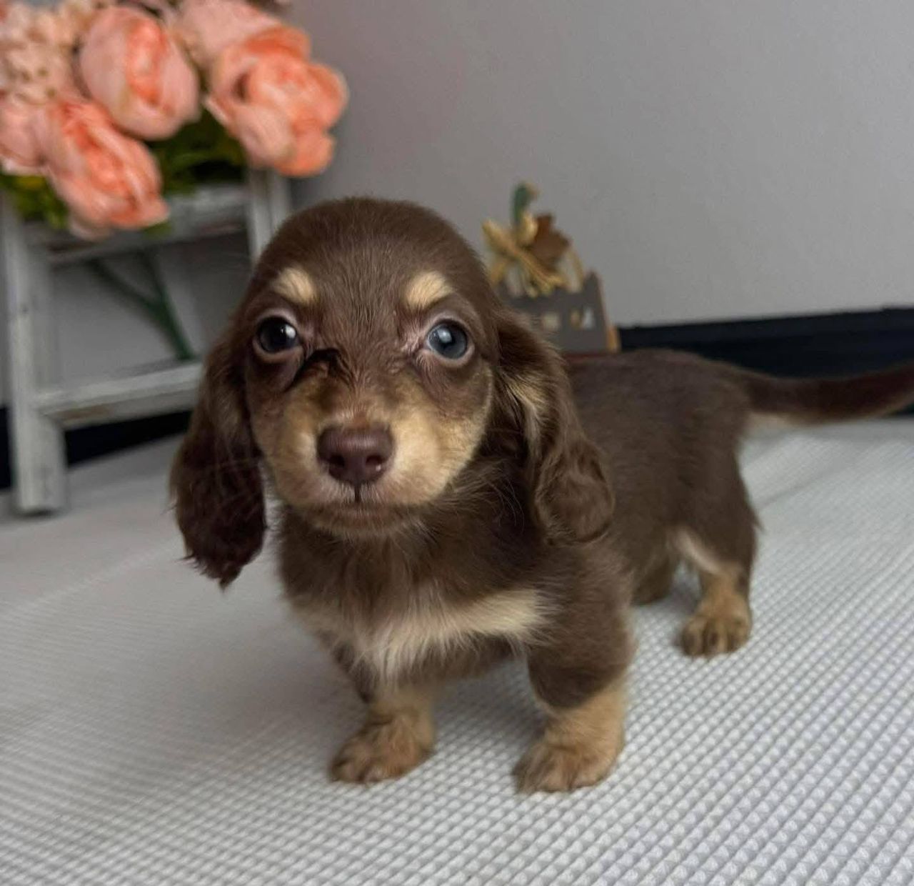 “All our Miniature Dachshund puppies are raised in a loving family environment, fully vet-checked, vaccinated, microchipped, and socialised before leaving for their new homes. They are affectionate, intelligent, and ready to bring joy to your family.”